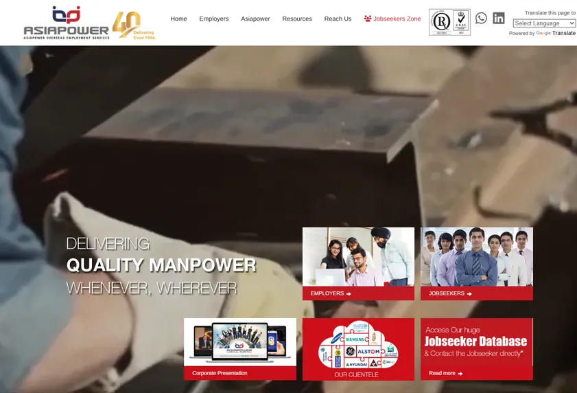 The asiapower.org website was developed as a sector-driven recruitment platform focusing on showcasing the company’s expertise across multiple global industries. The website highlights key sectors such as Oil & Gas, Engineering & Construction, Metro & Railway, Energy & Power, Shipping, Hospitality, and Healthcare, clearly positioning Asiapower as a specialized manpower provider for large-scale international projects. It also emphasizes the company’s legacy of over 40 years, global recruitment reach, and strong presence across India, Nepal, and Bangladesh. The platform includes detailed case-based recruitment campaigns, client associations, testimonials from global companies like Siemens and Samsung, and strong credibility indicators such as ISO certification and government approvals.