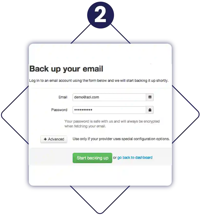 Start backing up your email in just 2 simple steps.