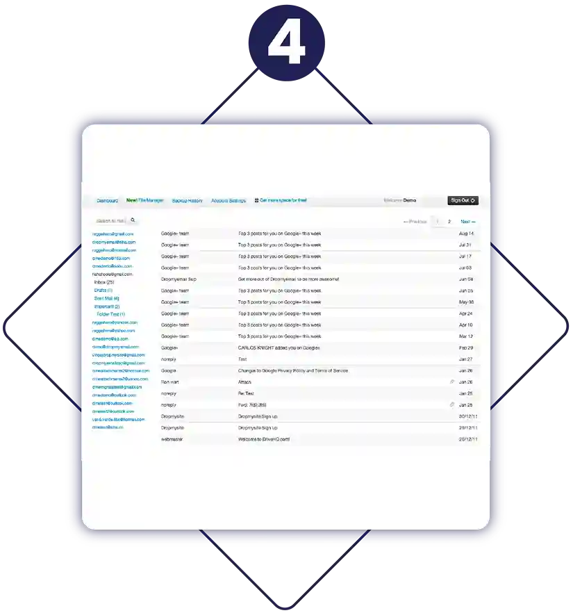 We ensure that none other than you have access to your backup emails and mail.