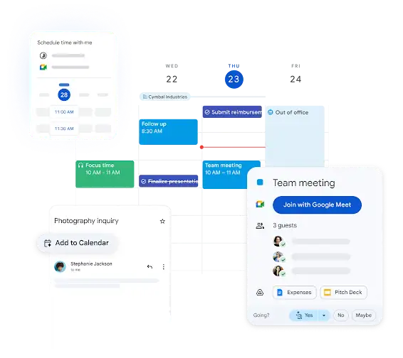 Manage your day with integrations across Tasks, Gmail and Meet. apps.