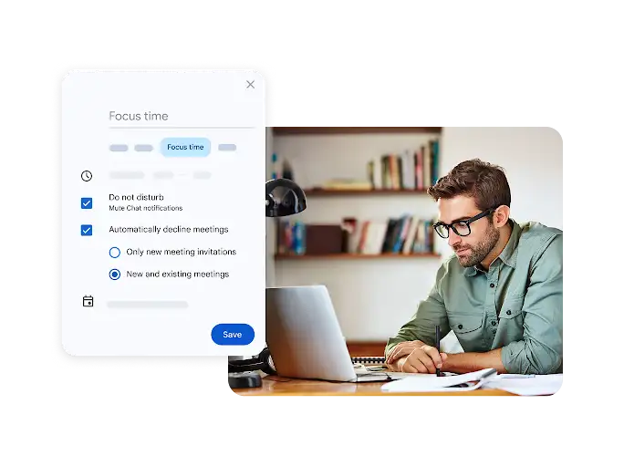 Schedule focus time to silence notifications and auto-decline meetings, so that you have uninterrupted time for deep work.