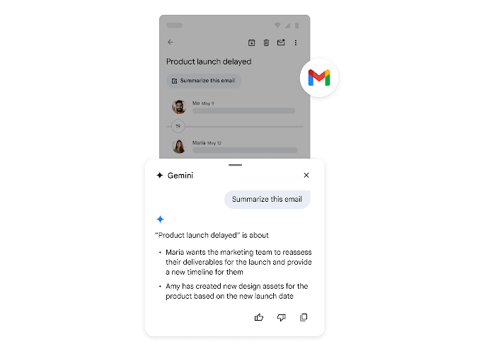Help me schedule in Gmail: Gemini finds the best meeting times based on your email context and Google Calendar, so that you can share options and book faster, all in one tap.