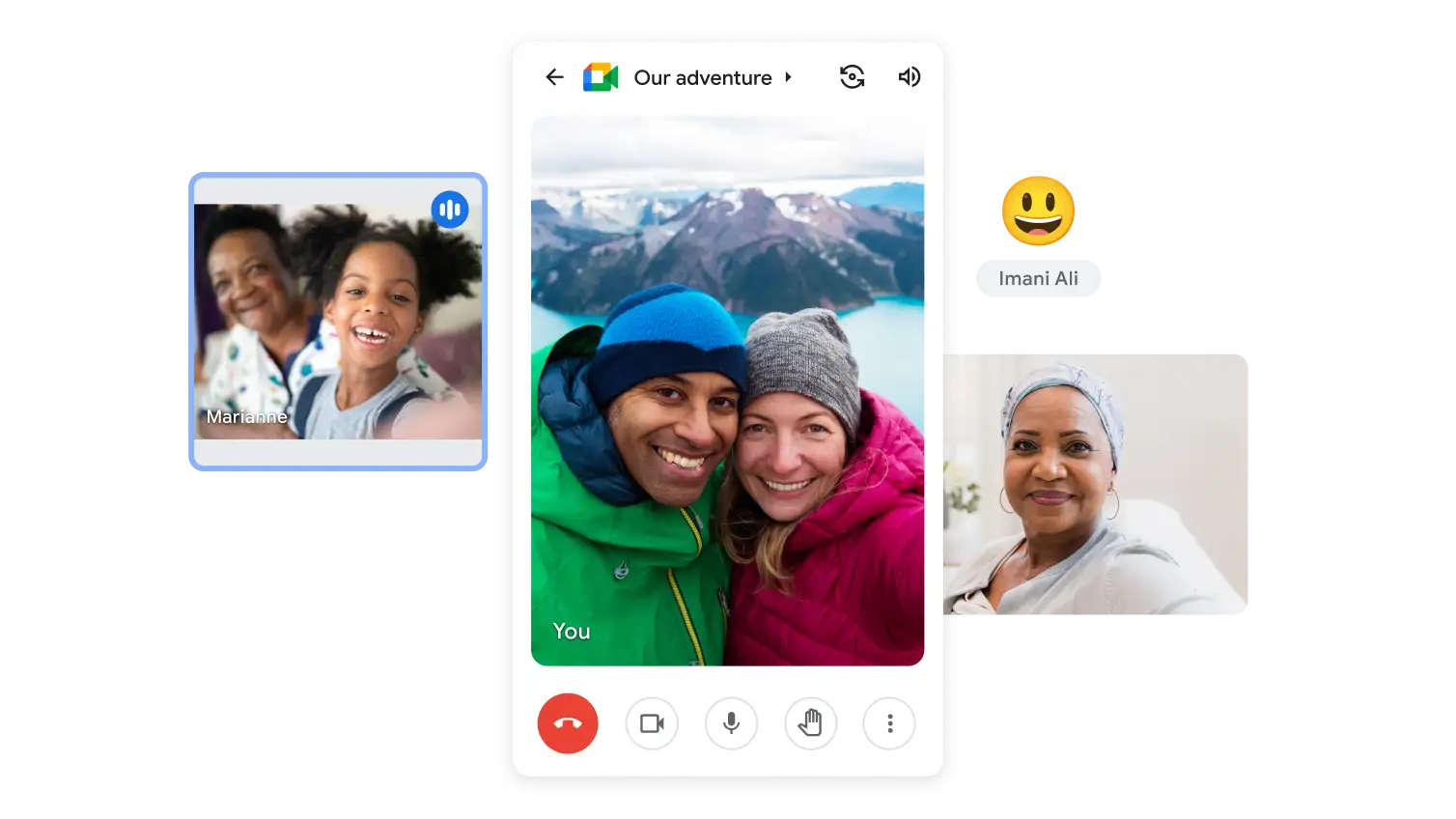 Make your time together fun. Watch YouTube videos, listen to music and play games with Meet live sharing2. Enjoy interactive features like effects and emoji reactions.