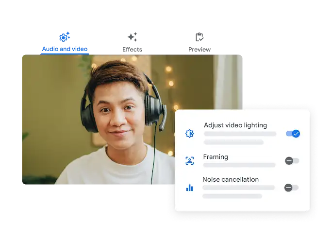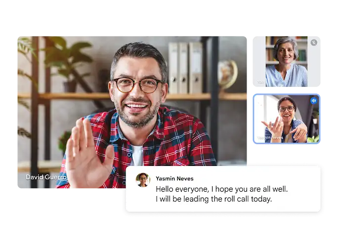 Look and sound your best with studio look, studio sound and studio lighting. Connect in 65+ languages with translated captions. Use 'take notes for me' for meeting details. Try all this and more to unlock the power of generative AI with Gemini for Google Workspace.