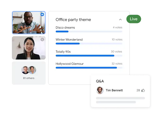 Keep people engaged during meetings with polls, breakout rooms, moderation controls and Q&A.