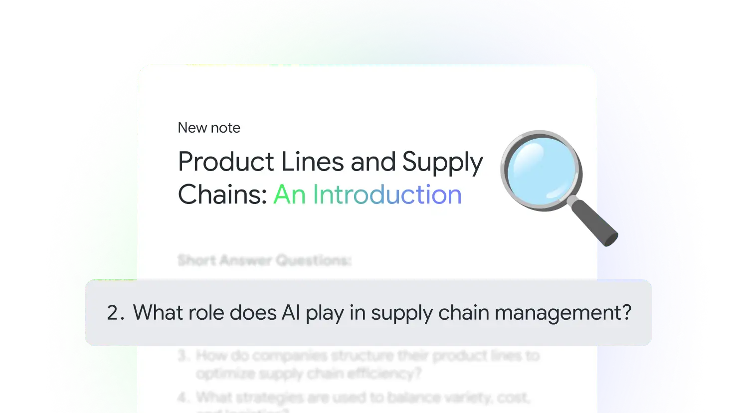 Upload product specs and market research to NotebookLM. Ask NotebookLM to create tailored meeting plans and answer product questions for more confident sales conversations.