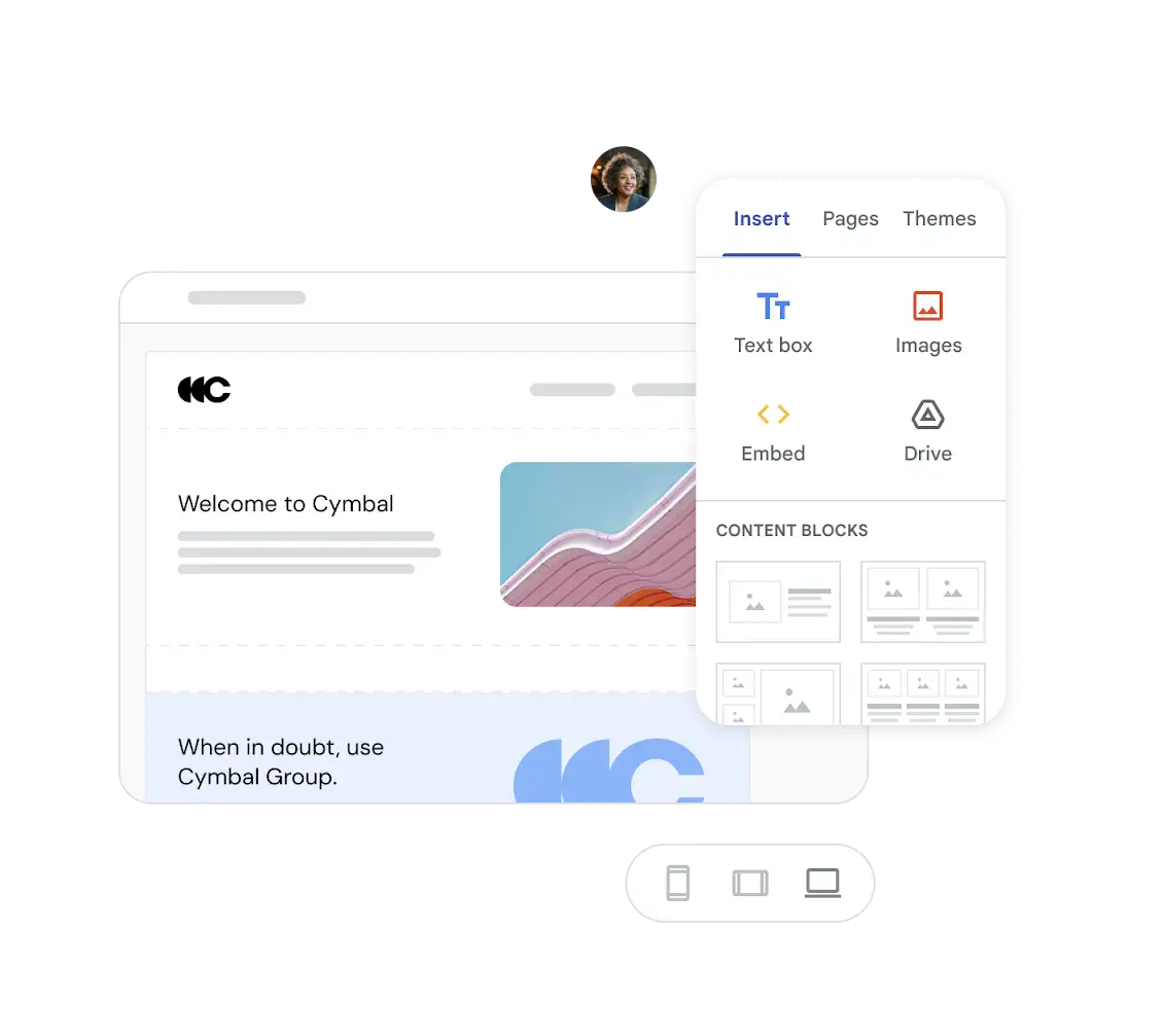 Embed dynamic content from your Workspace apps – like Docs or a shared Calendar.