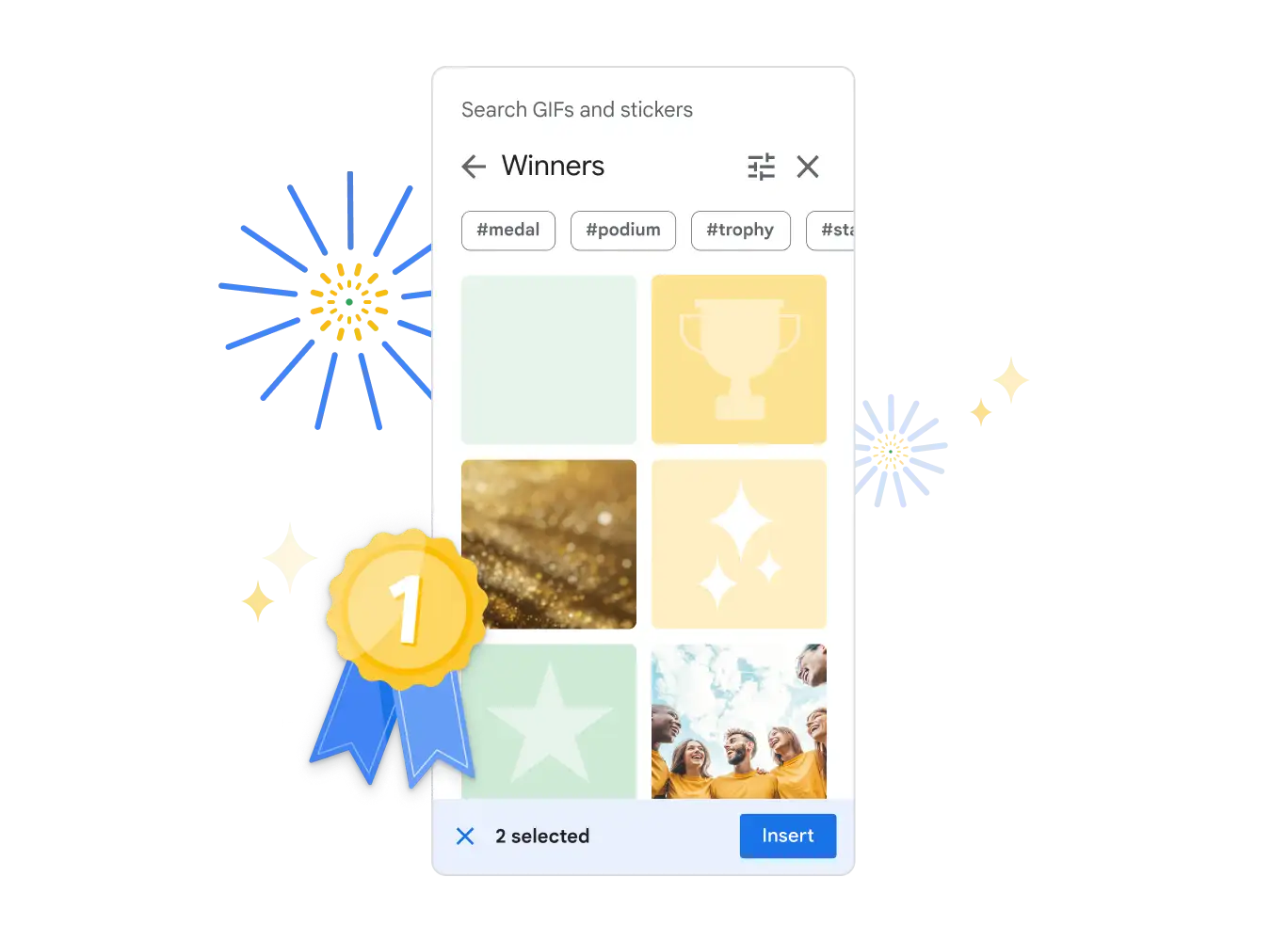 Give your presentations a pop of creativity with GIFs and stickers, available directly in Slides.