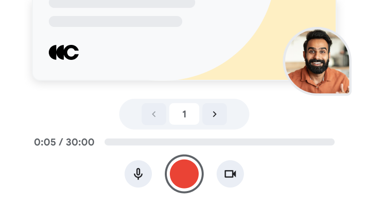 Land your message with confidence, with the flexibility to present live or record your presentation inside Slides.