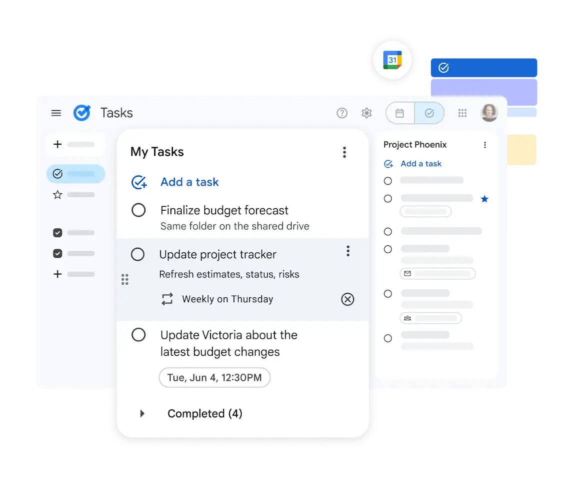 Capture, organise and track your to-dos with Google Tasks – right in the Google apps that you use daily.