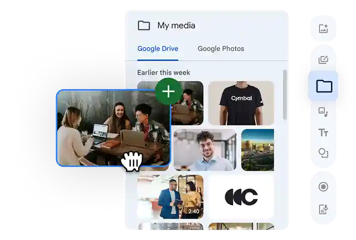 Personalise your videos by easily adding your own photos, videos and more, directly from Google Drive or Google Photos.