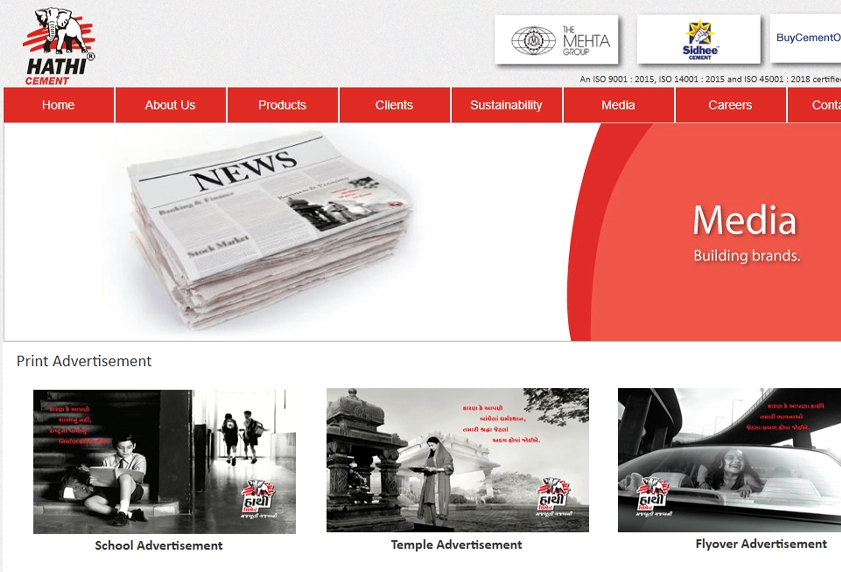 The Hathi Sidhee Cements website was developed as a corporate platform to represent Saurashtra Cement Limited and its flagship brands “Hathi” and “Sidhee.” The website showcases the company’s legacy as part of the Mehta Group, a global enterprise operating across multiple industries. It includes detailed sections such as company profile, product portfolio, production process, sustainability initiatives, clients, media, and investor-related information.