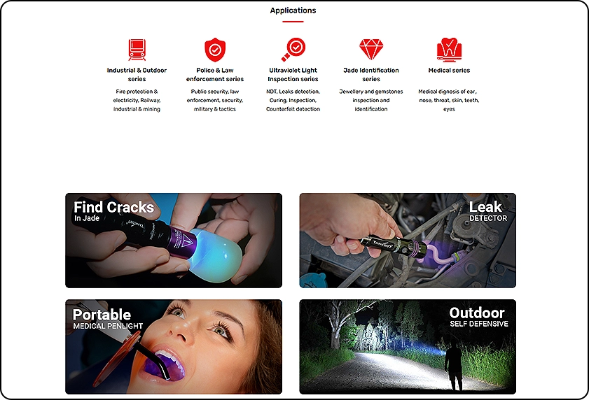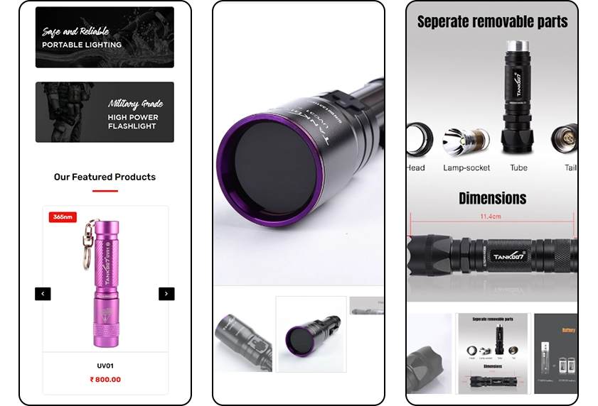 This project involved designing and developing a focused ecommerce website for Tank007 UV Torch to sell specialised UV lighting products and accessories. The goal was to create a product-first digital experience that clearly communicates technical specifications, usage scenarios, and product variants, while keeping the buying journey simple and fast for customers.