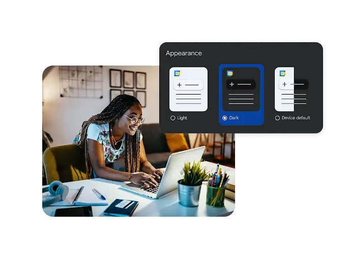 Colour-code your calendar and events to stay visually organised. Plus, personalise your calendar view with dark, light or device default themes to match your preference.