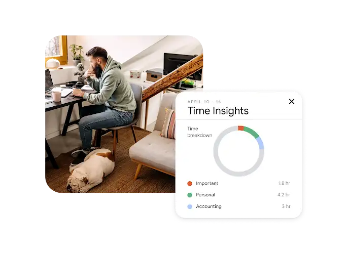 Stay focused and keep track of your tasks directly in Gmail, Calendar, Chat and Docs.