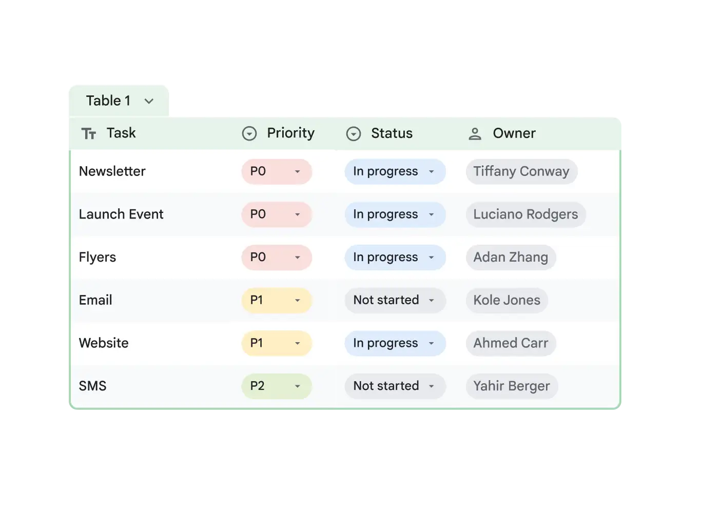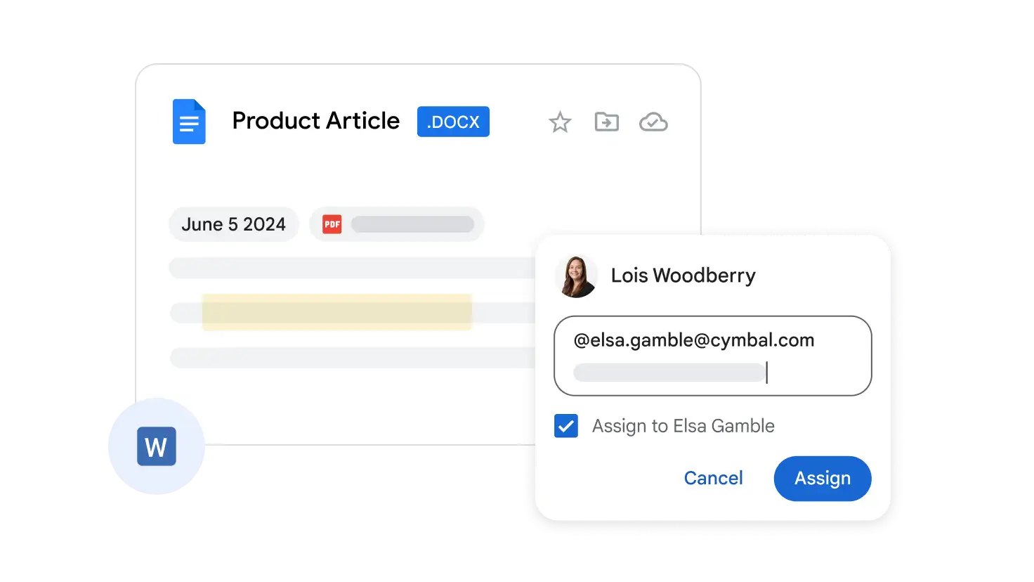 Instantly build formatted emails, calendar invites, review trackers, meeting notes and more in Docs when you type '@'.