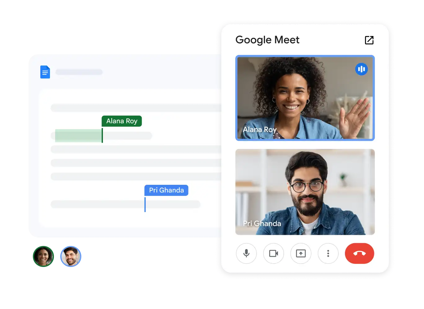 Collaborate in context by meeting directly from Google Docs, Sheets and Slides.