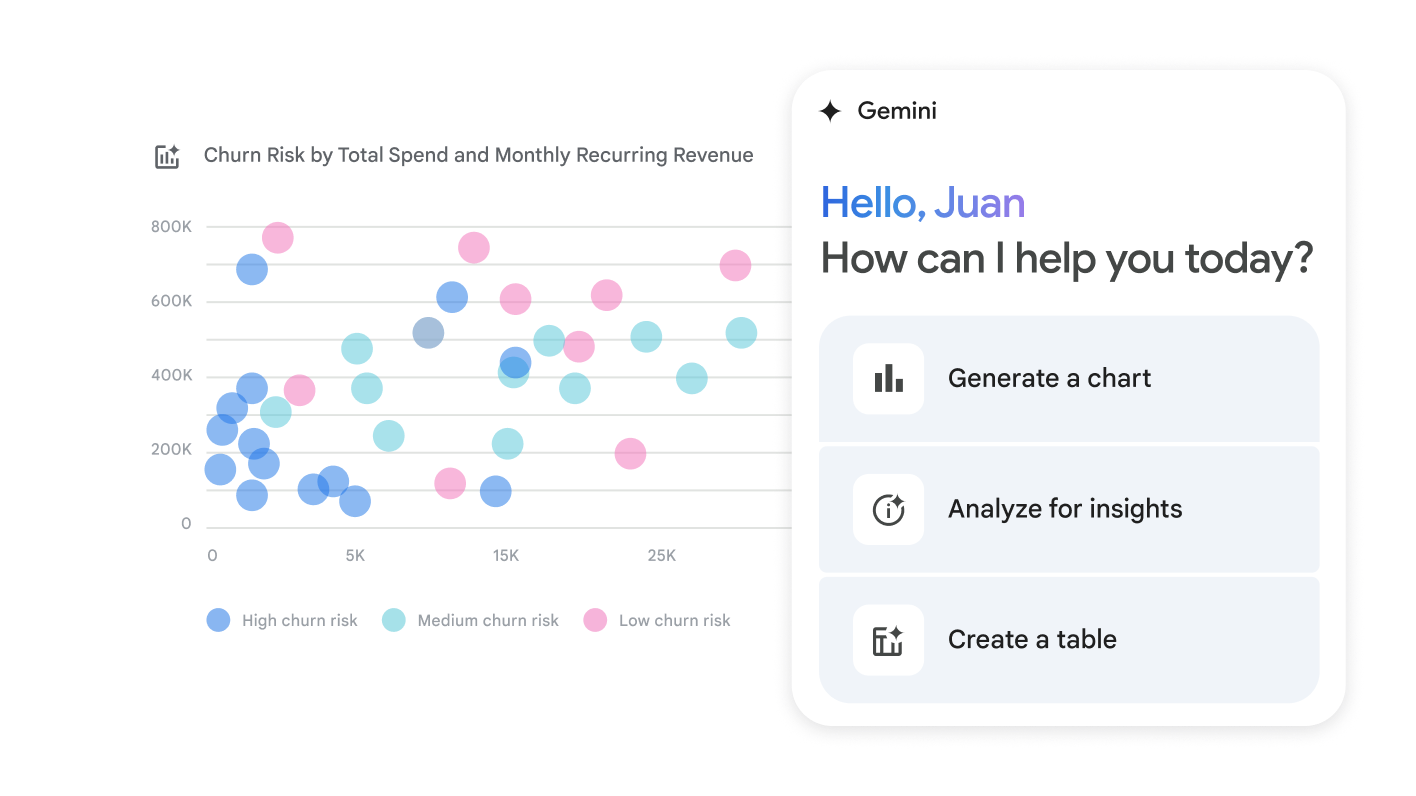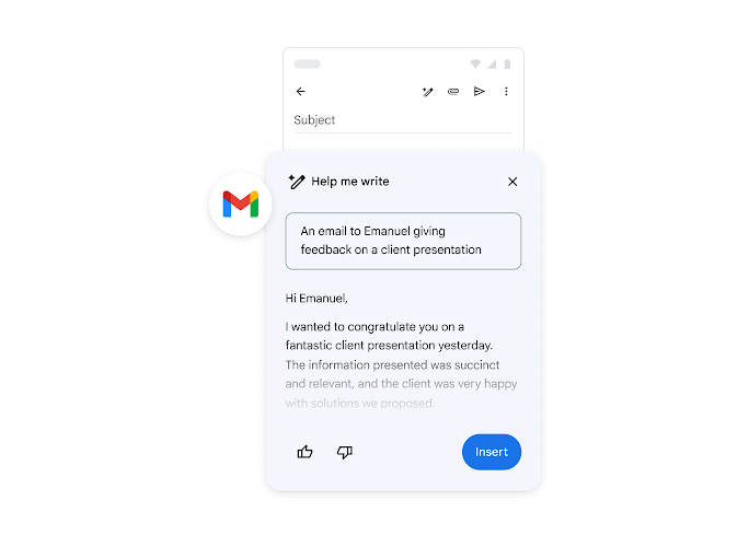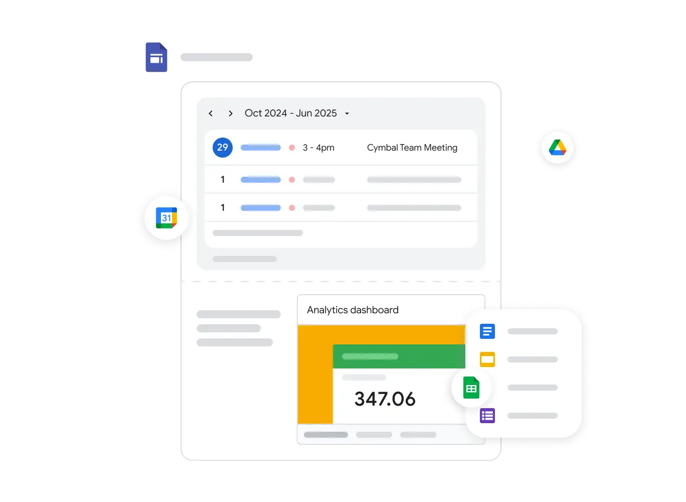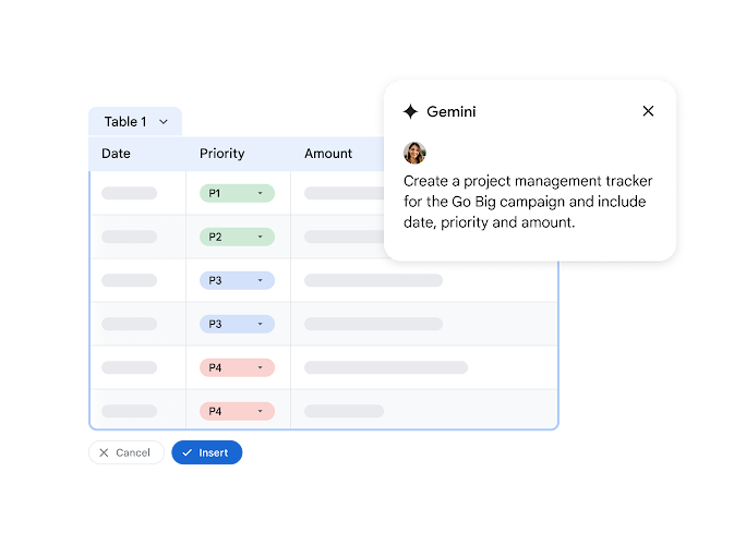 Do your best work faster with AI woven into apps that you use every day like Gmail, Docs, Sheets, Meet, Chat, Vids and more.