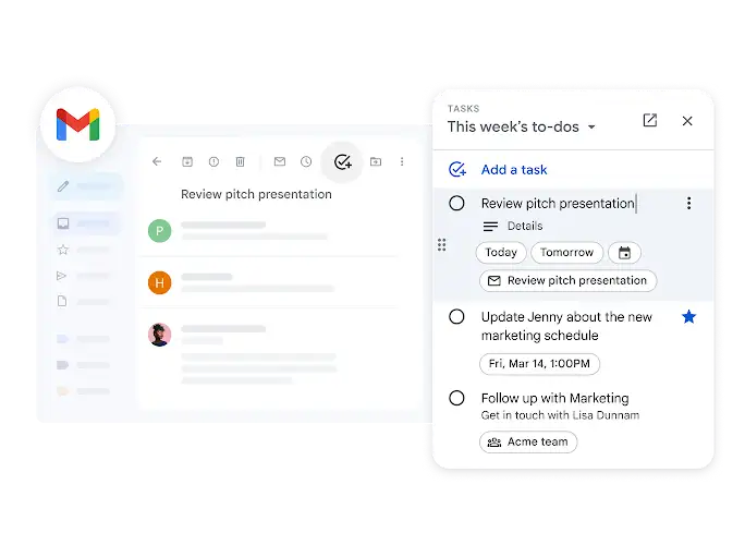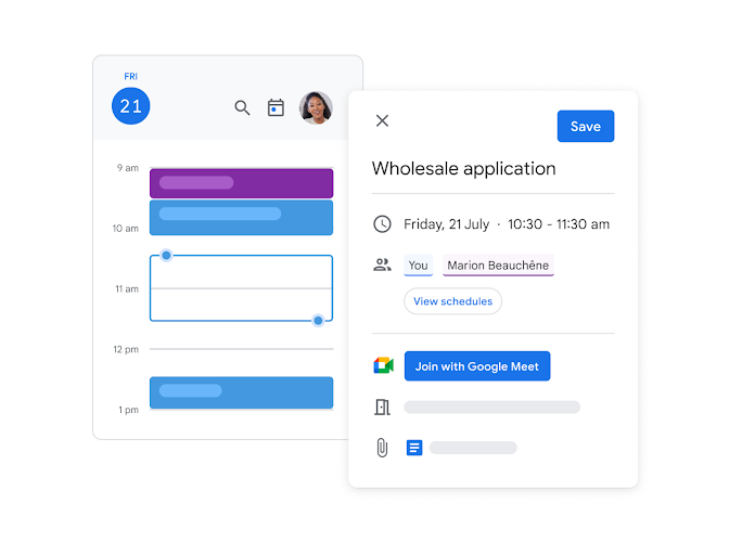 Manage your day with integrations across Tasks, Gmail and Meet. apps.