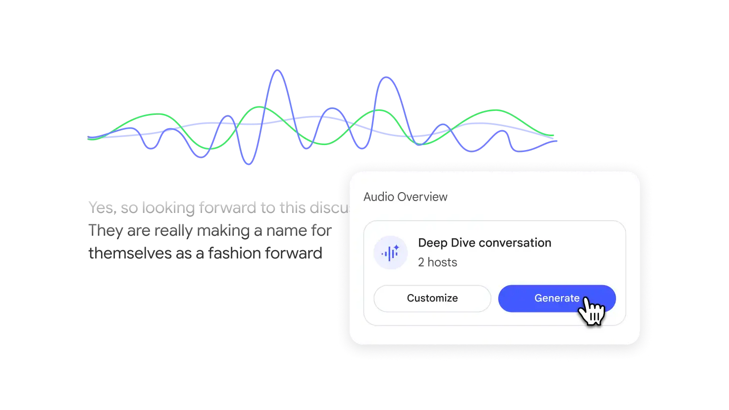 Your AI research and thinking partner, grounded in the information that you trust, complete with Audio Overviews to listen and learn on the go – now included in all Workspace plans.