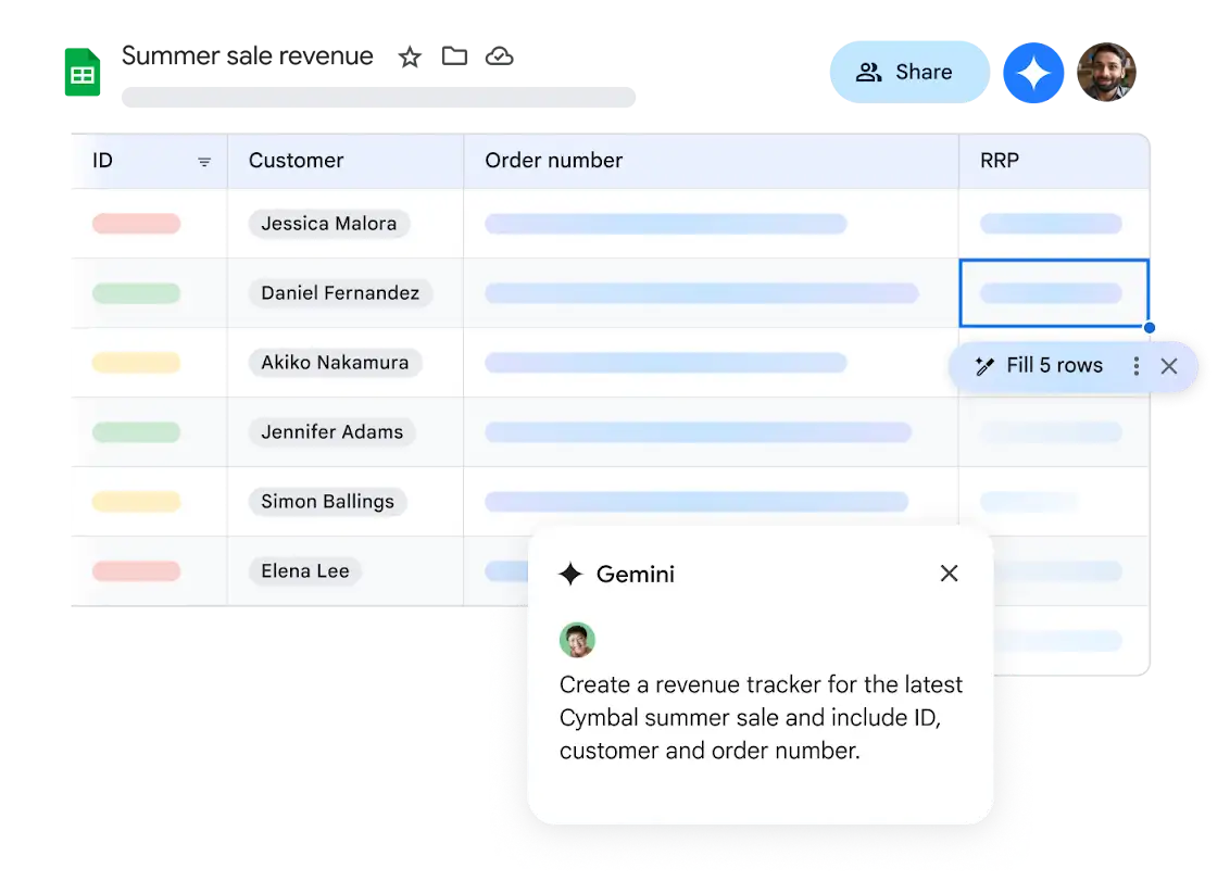 Gemini in Sheets can help you analyse data by detecting patterns and making suggestions, saving time and reducing errors.