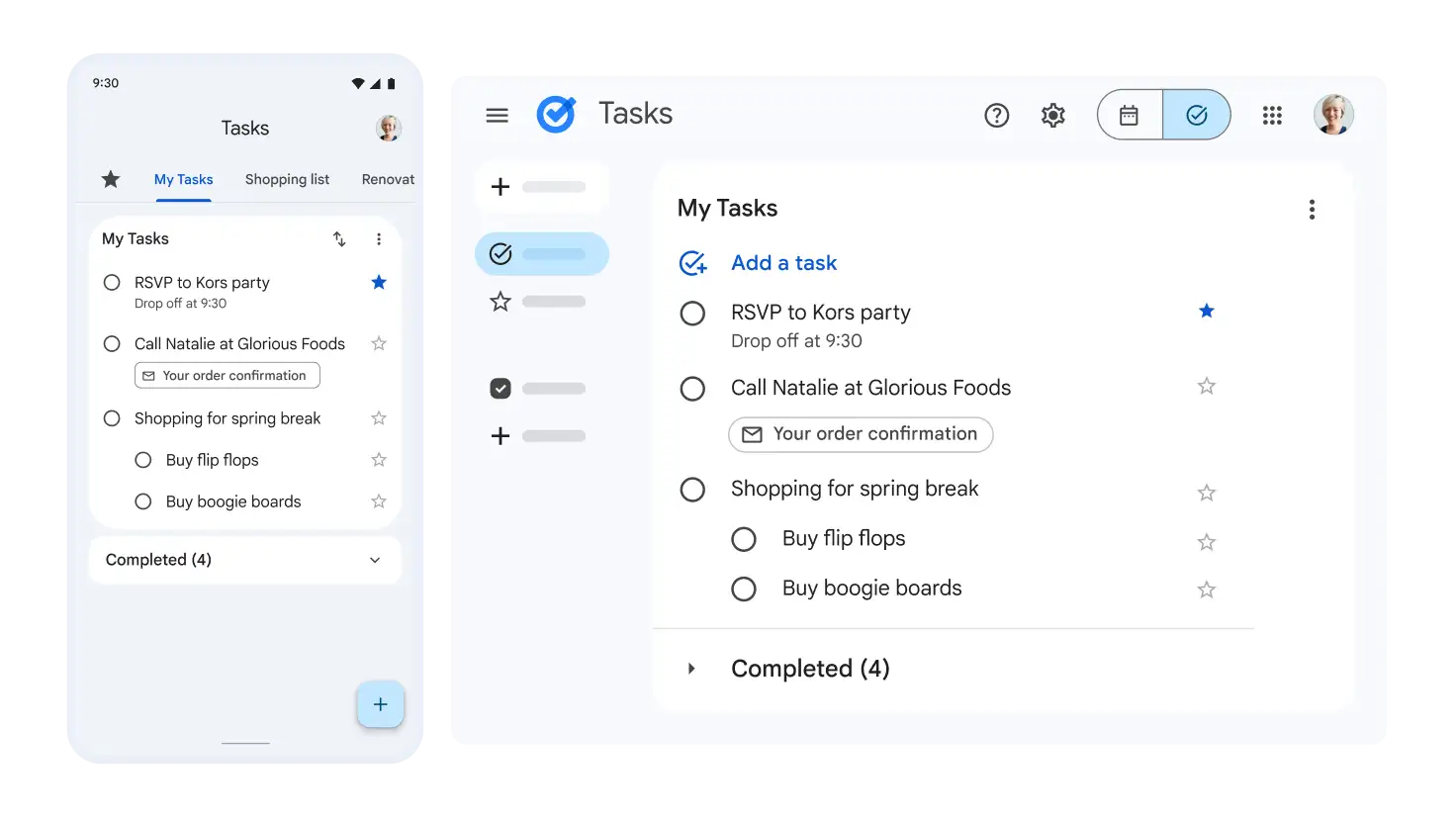 Add and manage your tasks whether you're at your desk or on the move. Your tasks are synced across devices when you're logged in to the same Google Account, so that you can seamlessly transition from your phone to your computer without missing a beat.