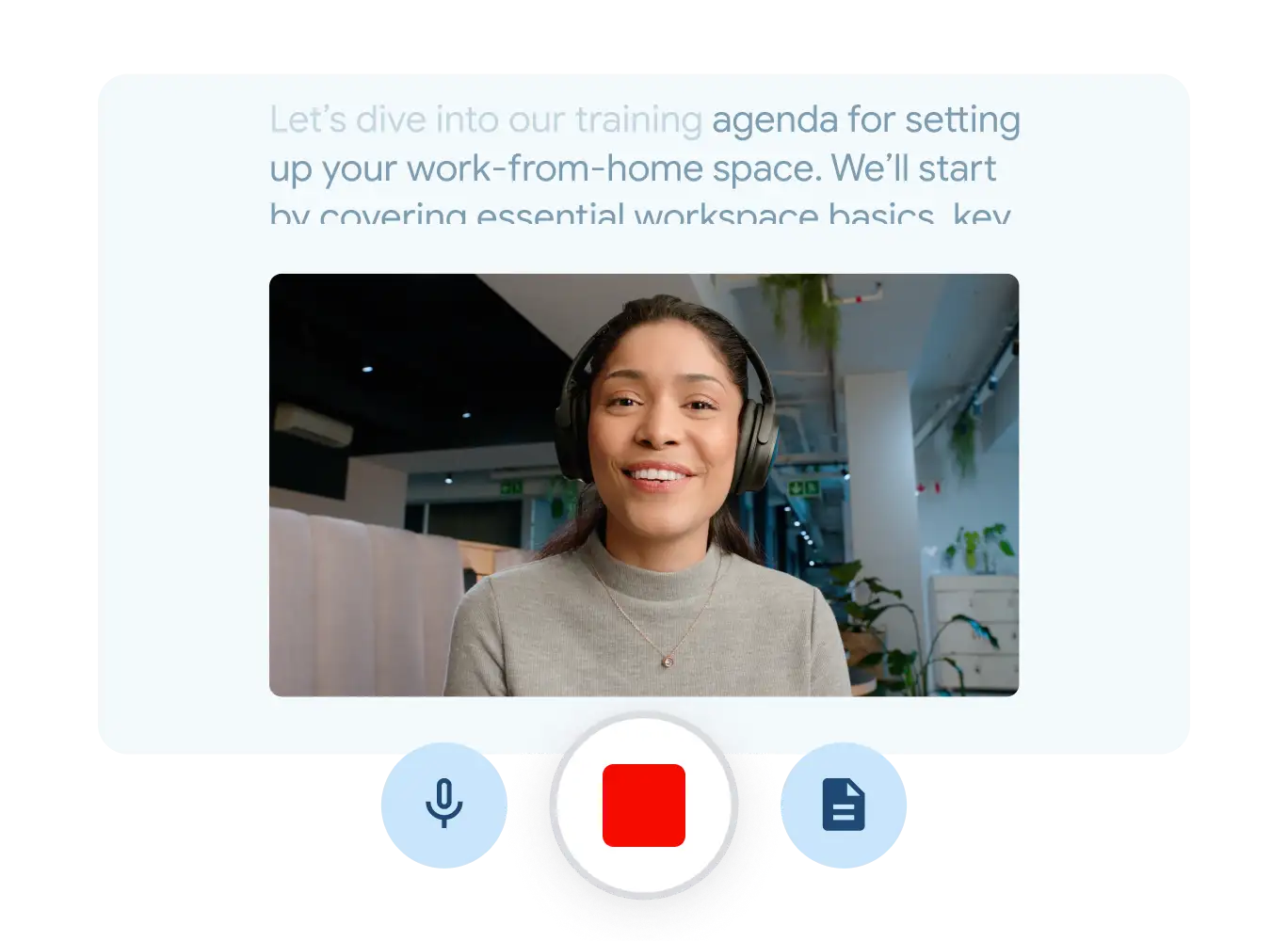 Land your message with confidence, with the flexibility to present live or record your presentation inside Slides.