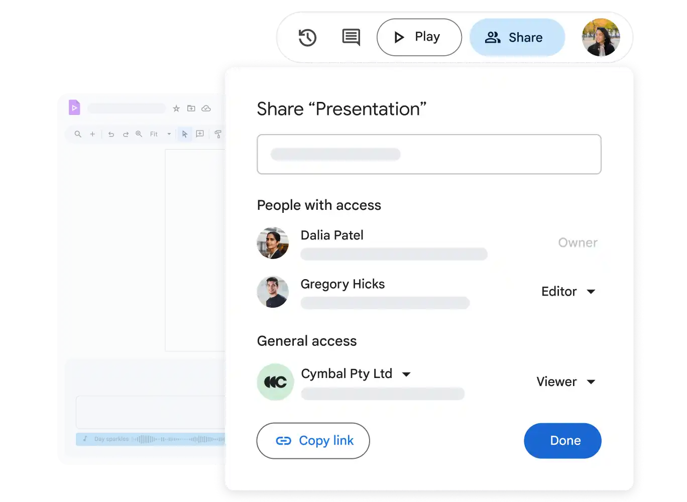 Easy-to-manage sharing permissions allow you granular control over who gets to edit, comment or view your slides.