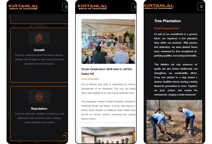 A structured and scalable website architecture was developed to position Kirtanlal as the parent brand while seamlessly integrating its multiple verticals. A unified design language was established to ensure consistency across all current and future digital properties. Each vertical was presented with clear segmentation, allowing users to understand the scope and capabilities of the business without confusion. Dedicated sections were created to highlight the company’s legacy, operational strength, and CSR initiatives, reinforcing credibility and trust. The overall layout was designed as a flexible framework that can be extended to future websites, ensuring brand consistency and ease of expansion as the organisation continues to grow.