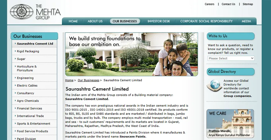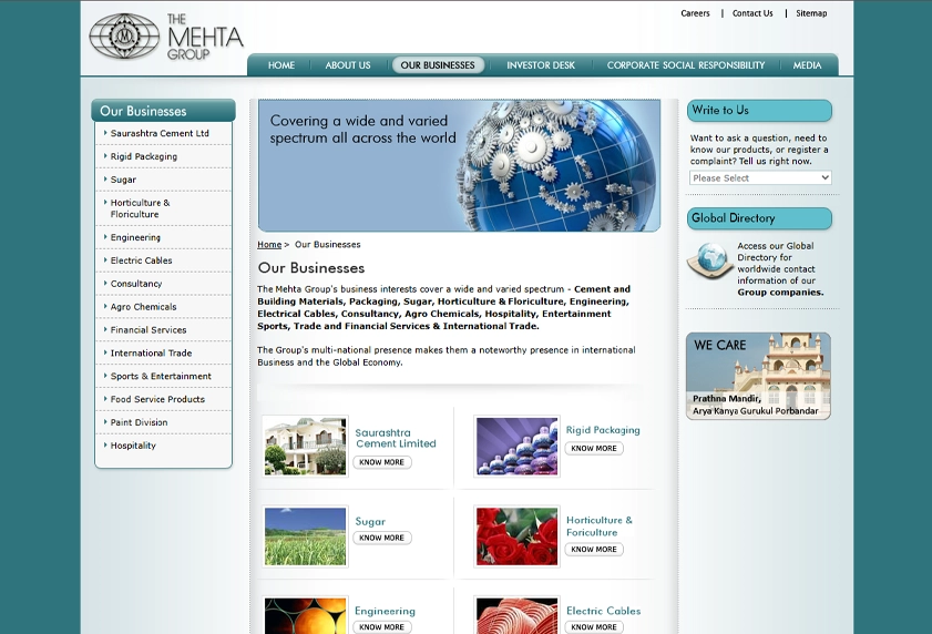 The Mehta Group website was developed to represent a highly diversified global business operating across multiple industries including cement, sugar, engineering, packaging, financial services, and international trade. The objective was to create a unified digital platform that clearly showcases the group’s vast portfolio of businesses, global presence, and legacy. The website includes structured sections such as “Our Businesses,” “Investor Desk,” “CSR,” and “Media,” allowing users to explore different verticals in an organised manner. Each business division is presented with dedicated highlights, helping users understand the scale and diversity of operations across regions like India, Africa, and international markets.