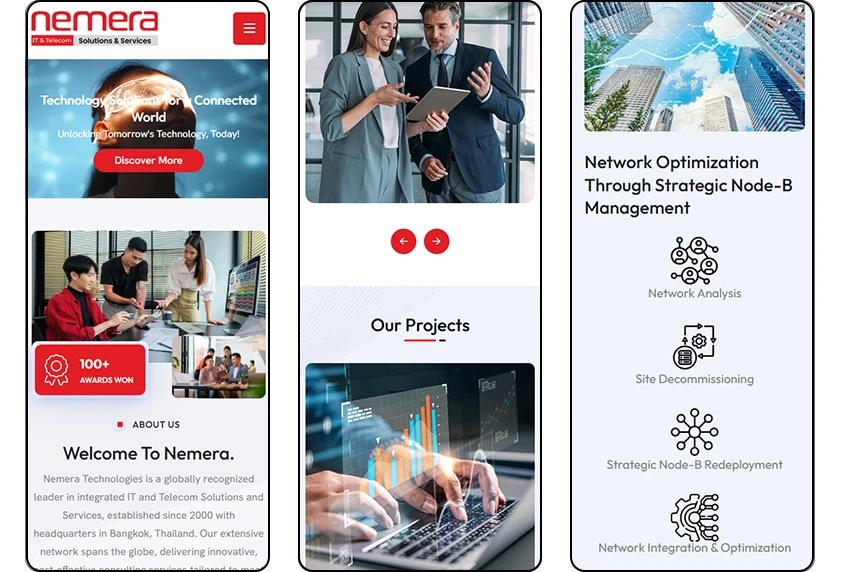 Think Technology Services executed a complete website redesign, reworking the information architecture and introducing a modern, intuitive UI/UX. The website was rebuilt with optimized visuals, refined content, and performance-focused enhancements to ensure faster load times and smoother interactions. Every design decision was guided by usability, scalability, and alignment with Nemera Technologies’ brand standards.