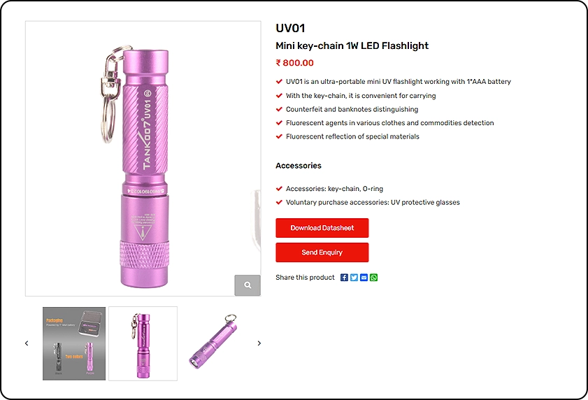 This project involved designing and developing a focused ecommerce website for Tank007 UV Torch to sell specialised UV lighting products and accessories. The goal was to create a product-first digital experience that clearly communicates technical specifications, usage scenarios, and product variants, while keeping the buying journey simple and fast for customers.