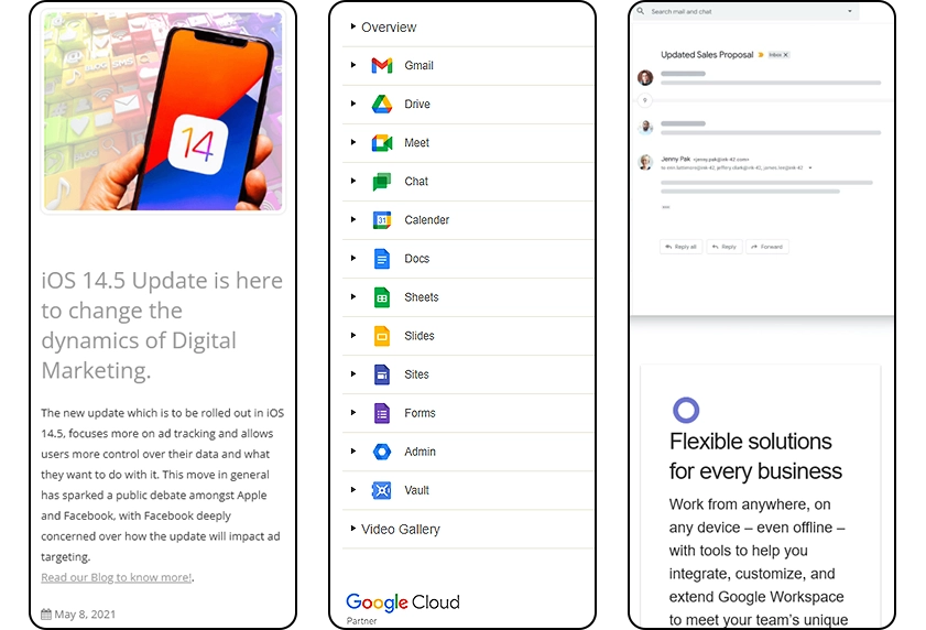 The primary challenge was organizing a large number of services across different domains into a single website without making it feel cluttered or confusing. Each service—whether it is Google Workspace, CRM, or digital marketing—has its own depth and technical complexity, making it difficult to present everything in a simplified manner. Another challenge was ensuring that the website maintains clarity while cross-selling multiple services without losing focus. Structuring the content in a way that appeals to both technical and non-technical business users was also a key consideration.